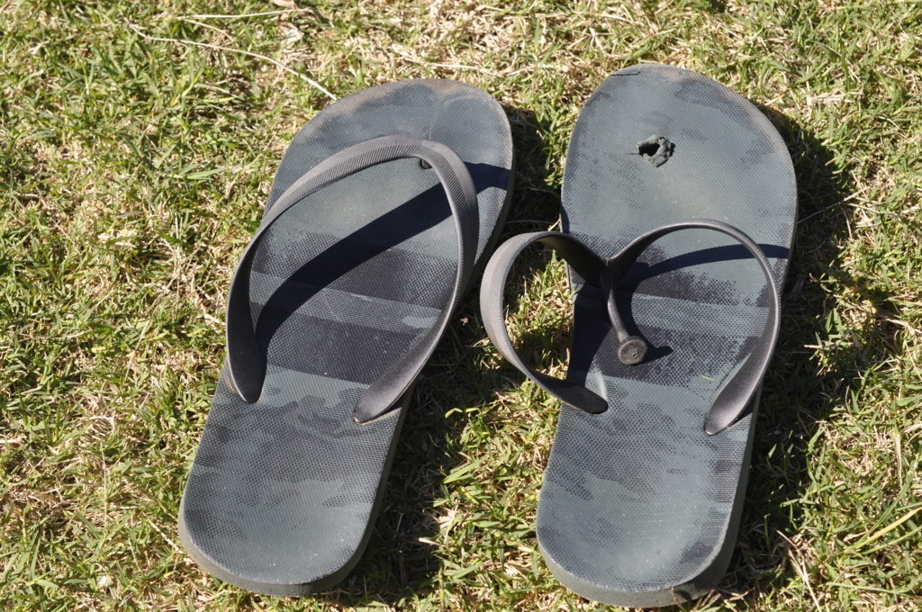 私のビーチサンダルはK-martというショッピングセンターで1.5ドル(100円くらい)で売り出されていたときに買ったのですが、値段はともかく、もう既に8か月くらい一緒に歩んできた相棒!