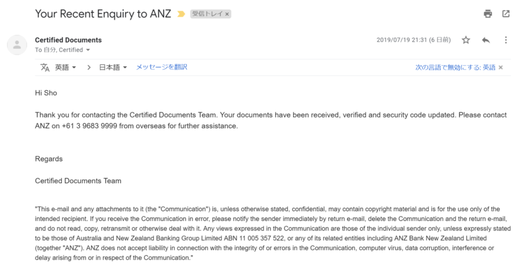 不安な場合は、ANZ日本支店に電話してみましょう。親切に教えてくれますよ。