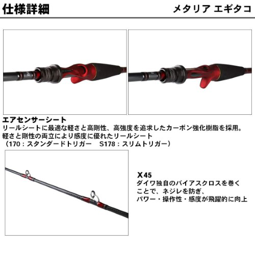 海底を艶めかしくなめるように引いてくるアクションをストレスなく行えるだけでなく、大ダコが掛かった際にも安定したやり取りを可能にしバラシを大幅に減らすことを可能になっています。リールシートはトリガーシートへ変更されたリニューアルモデルであり、タコエギ、タコテンヤなどの船でのタコ釣りの対応はもちろん、船テンヤタチウオにも最適な先調子アクションとなっています。