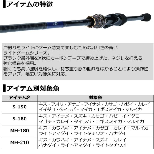 沖釣りをライトにゲーム感覚で楽しむための汎用性の高いライトゲームシリーズです。イイダコ釣り専用モデルではありませんが、スペックの通り問題なく使えます。いろいろなモデルがありますが、イイダコやハゼ、アナゴ釣りなどにはS-150モデルが丁度良いでしょう。