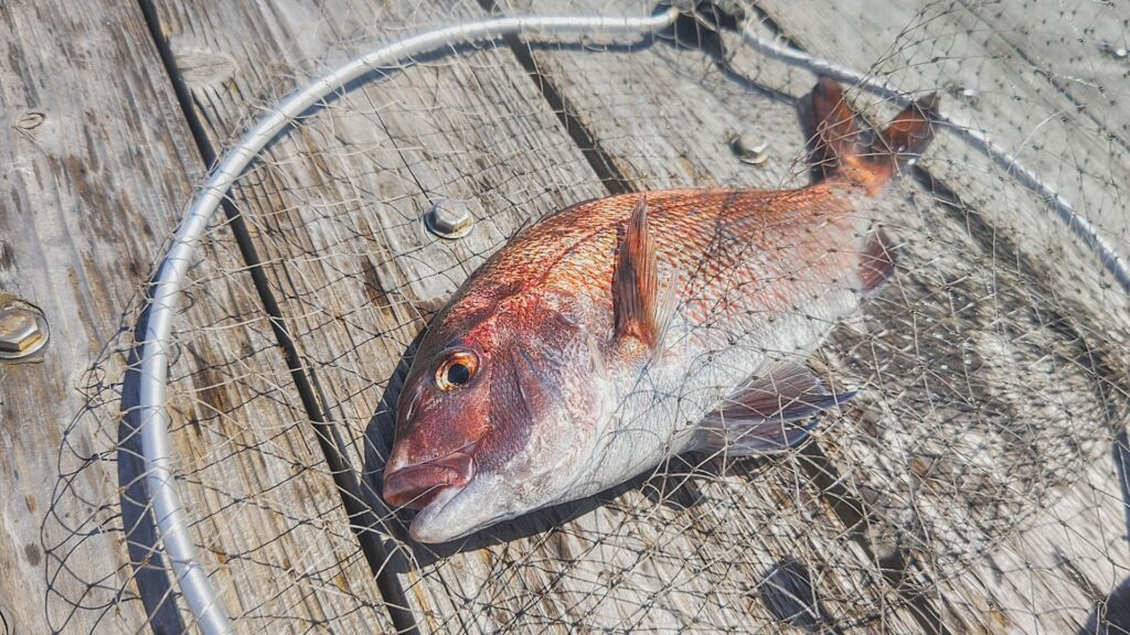 ためているだけで大型も楽に取り込め、さらに、グラスソリッド穂先で真鯛を繊細に攻略