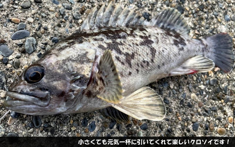 と初心者でも狙いやすい根魚がクロソイです。遊泳力も強く、ボトム(海底)だけではなく中層にまでベイトフィッシュ(捕食する魚)を追ってくるほど獰猛。釣って楽しい、食べて美味しいロックフィッシュの代表格とされる魚です。