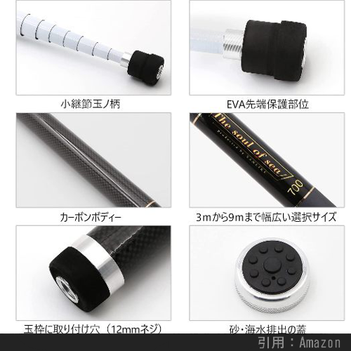 8mサイズまで選べるサイズバリエーションがおすすめなタモの柄です。価格が安く、タモ枠・ナイロン網が搭載しており、コスパは上々。カーボン含有率が低いところが若干 気になりますが、価格を考えれば妥当なところ。枠・網については『奥行がないから魚を入れにくい』というレビューも見られます。そちらについては、別途 選ぶ必要があるかもしれません。