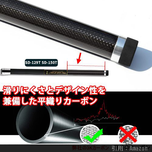 コスパが非常に良いSANLIKEのタモの柄です。他ブランドに比べるとやや知名度が低く、耐久力が心配なところはありますが、その他の機能性やコスパは非常に優れていると思います。上記の通り、5mで455gという軽さ、なおかつカーボン含有率90%というのもおすすめポイント。