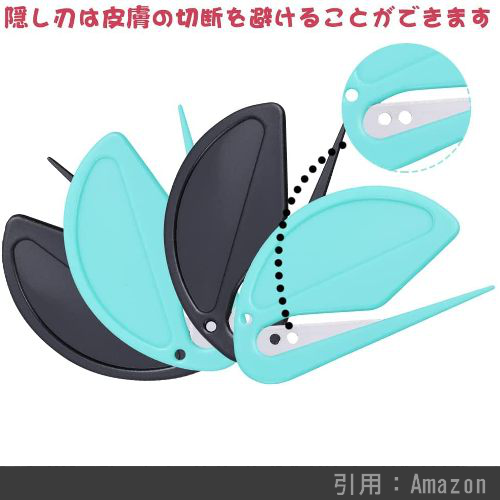 刃が内蔵されている設計になっているので小さなお子様がいる家庭でも安全・安心。切れ味も抜群!というレビューも多く、超コンパクトであることに加えてストラップ用に穴も空いていたりと機能性が素晴らしく高いです。(執筆時現在は)500円を切る圧倒的コストパフォーマンスもおすすめポイントです。
