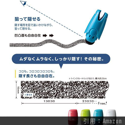- 隠す場所を狙って隠せる『ローラー式個人情報保護スタンプ』付き