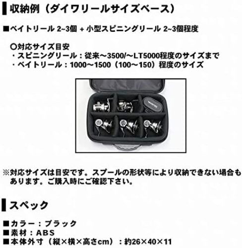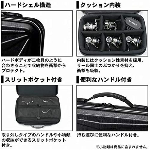 必要に応じて移動可能な「セパレーター」まで付いているハードタイプのリールケースです。クッション性の素材で仕切られているのでリール同士がぶつかりません。高価なリールをしっかりと保護したい方におすすめです。小物収納やハンドルなど、使い勝手が非常に良いと評判。