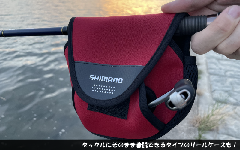 ロゴ以外はほぼSHIMANOのリールケースです。3mm厚のネオプレン素材を採用、高い防水性能、リールハンドルそのままで収納できたりと機能も十分。勿論、細かい部分まで見るとSHIMANOの方が上等ですが、特にこだわりのない方には十分なリールケースでしょう。