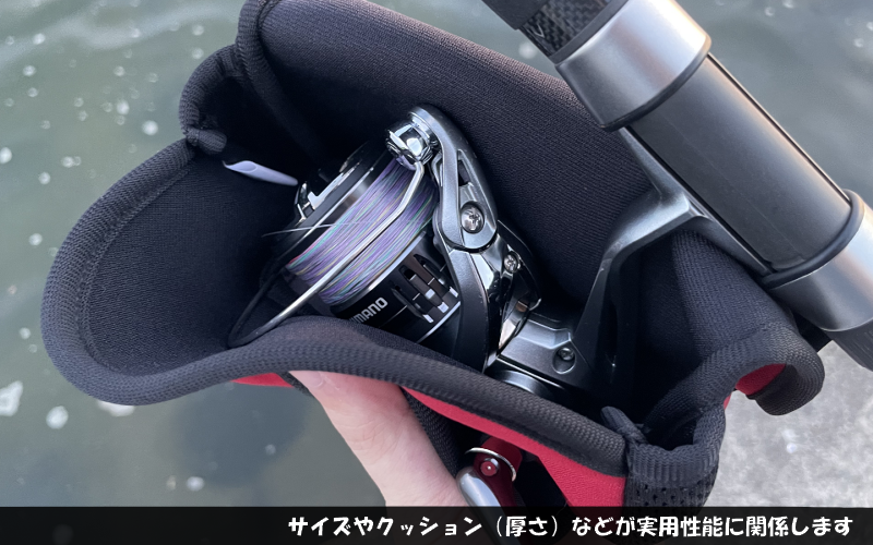 実売価格が1000円を切る安さが一番のおすすめポイントです。安すぎるので不安になる方もいるでしょうが、釣具メーカーのプロマリンです。ネオブレン素材を採用しており、衝撃吸収性や固定力など最低限のスペックを備えています。とりあえずリールをカバーしておきたい方には十分な性能でしょう。