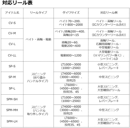 | 対応リールサイズ | SS-1000番 S-2000~C3000 M-3000~5000 L-5000~30000 |