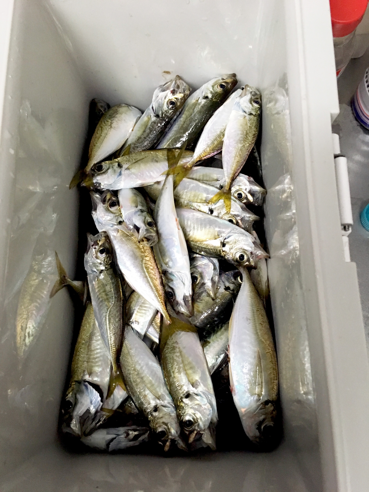 たしかに、アジは通常そこまで大きい魚ではありません。たまに40㎝以上のギガアジが釣れることもありますが、基本的には船アジ釣り(LTアジ)では20㎝~30㎝がアベレージサイズ。しかし、群れに当たると50匹以上釣れることもある船アジ釣り(LTアジ)です。