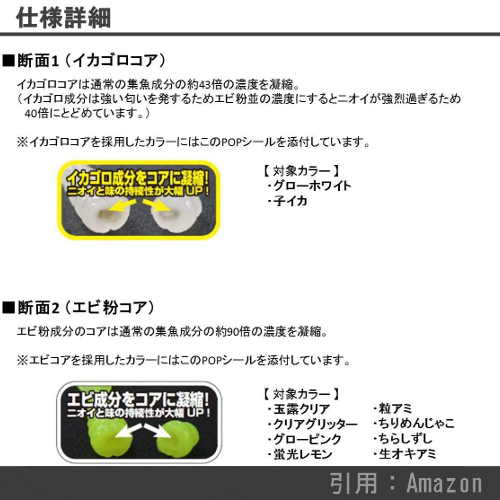 →エビ粉成分のコアは通常の集魚成分の約90倍の濃度を凝縮。 - セットする向きで波動が変化