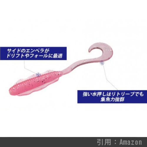 ワームの両端には『エンペラ』、水押しの良い『カーリーテール』