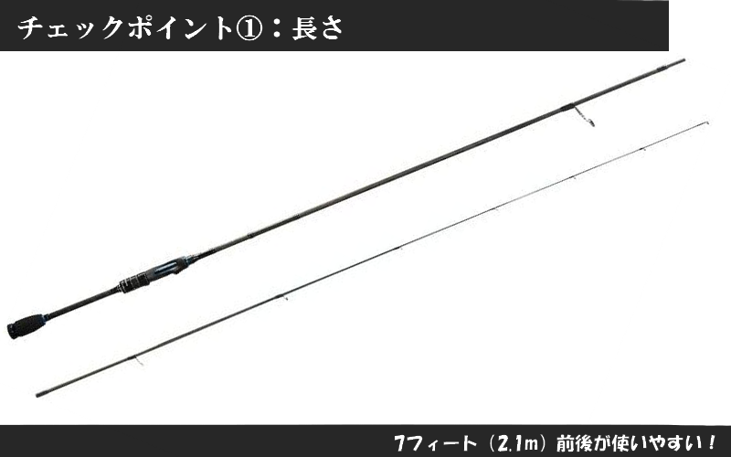 長さは7フィート(2.1m)前後のメバリングロッドがおすすめです。