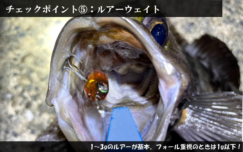 ティップを選ぶにあたっては、まずメバルの生態を考えましょう。捕食は反転型です。餌を得た瞬間に体を反転させて元の定位置に戻ろうとする修正があるので、アジングのように微細なアタリを感知してフッキングさせる必要はありません。