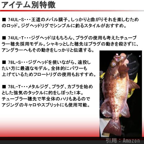 軽量ルアーを飛ばすことに長けており、小メバルのバイトも手元にシッカリと伝えてくれる。アジングにも併用できるので、最初の1本におすすめ。 - L(ライト)