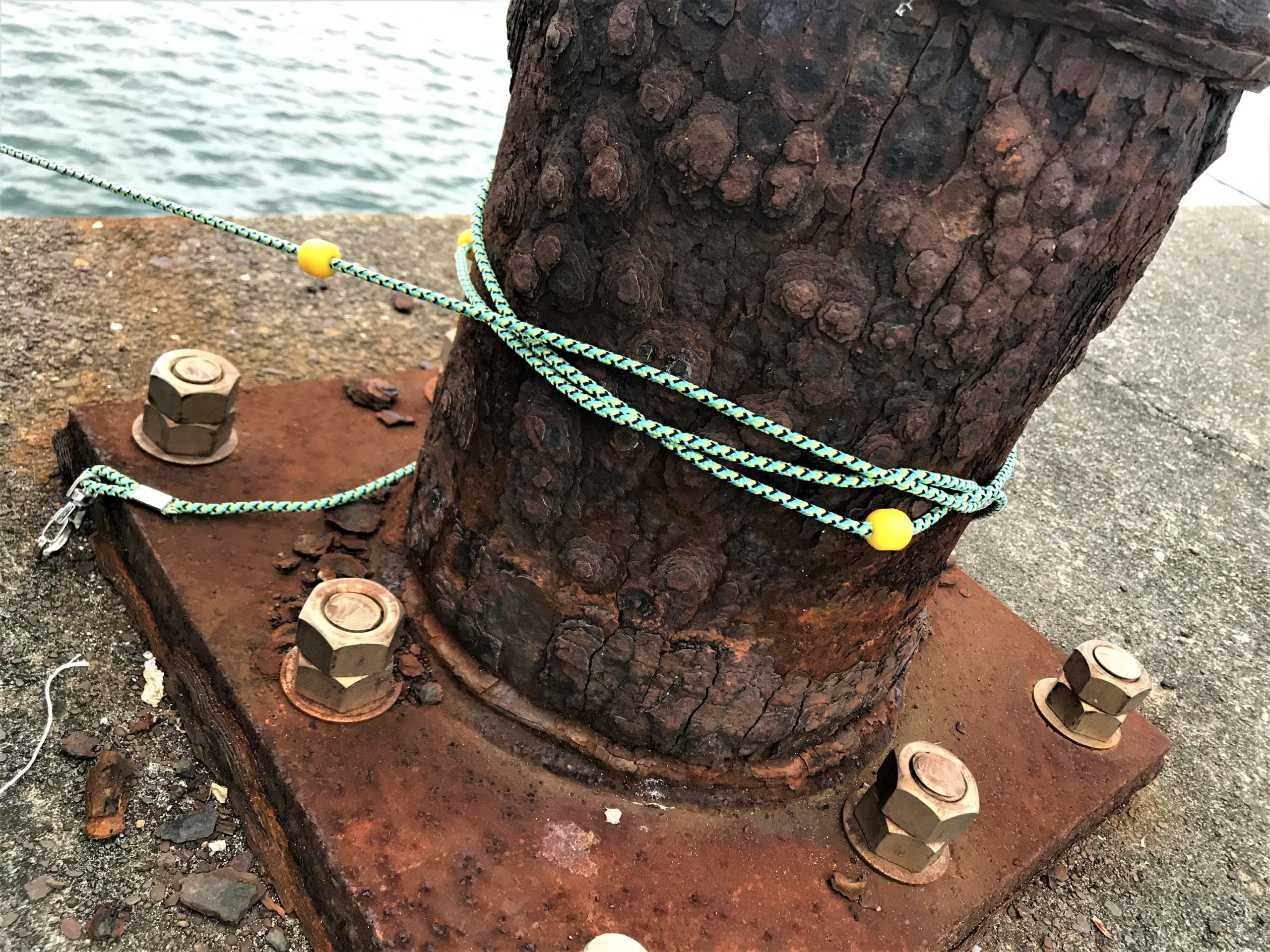 ただのヒモタイプでも問題ないのだが、数珠付きロープだと数珠部分が良い感じにロープを固定する起点となってくれるので、従来のロープよりも格段に舫(もやい)などに引っ掛けやすいという利点もある。