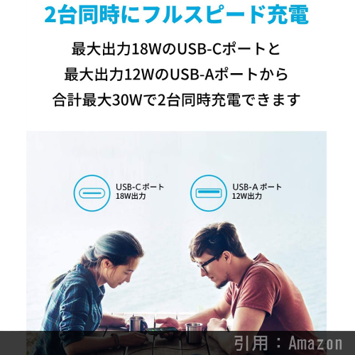 | 対応ポート数 | ・入力用 Micro、Type-Cの2つ ・出力用 USB-A×2つ |