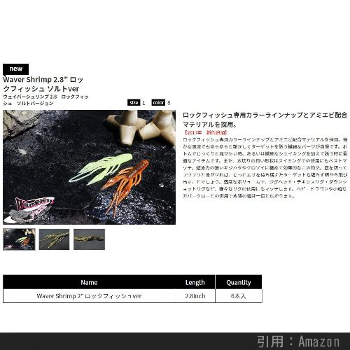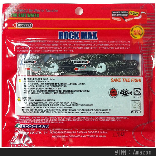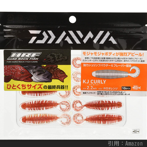 スレたロックフィッシュに最適なピンテール系のソフトルアーです。タダ巻きやカーブフォールで反応が得られなければ、ジグヘッド「スキップヘッド」や「ファインヘッド」との組み合わせで、横や縦に竿先で軽くトゥイッチすると更に効果的とのこと。釣果は圧倒的ですが、マテリアルのせいか結構 セットが難しいのが残念なところ。。