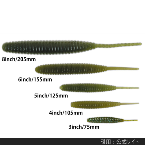 と心配されるような高い釣果を叩き出すワームです。ジグヘッドはもとより、テキサス、キャロライナ、ダウンショットリグ、そしてネコリグやジグトレーラー等、あらゆる使い方で効果を発揮します。ゆっくり巻きが推奨されていることもあり、初心者でも簡単に使えると思います。