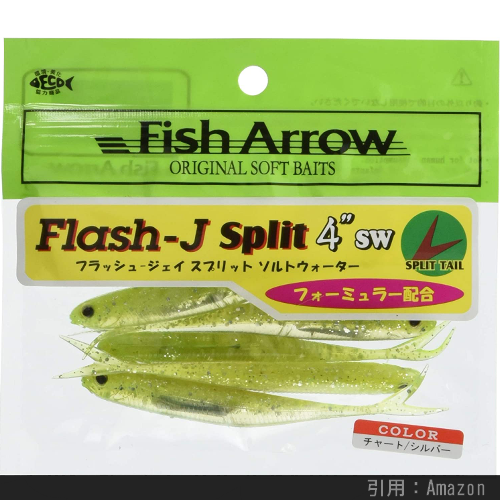 筆者が初めてフラットフィッシュを釣った記念ルアーでもあり、あれから数年経った今でも愛用しています。特におすすめだった3インチが全然 売ってなくなってしまいましたが、それでも良く釣れるワームです。ジグヘッドリグで使用する際は頭を切ると良りましょう。サイズがちょっと小さくなって、シルエットも小魚に似ます。