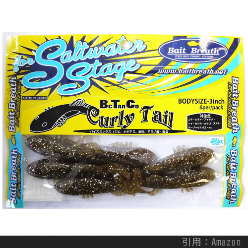ハゼのようなシルエットのベタンコカーリーです。ジグヘッドではただ巻きでロールアクション、テキサスリグ、オフセットフックでは安定した泳ぎをします。小型のアイナメでも食べやすい2インチから選べるのもおすすめポイントのひとつです。