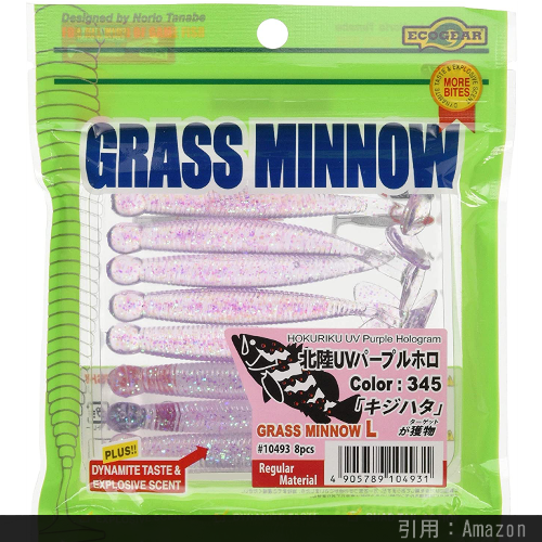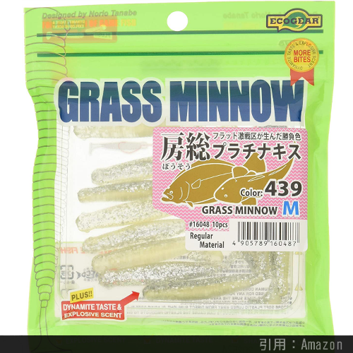 コスパと信頼度が抜群に高い、不朽の名作ワーム『グラスミノー』です。豊富なカラー・サイズバリエーションから日本だけではなく世界で支持されているルアーで、Youtubeでも数々のインプレ動画が上がっています。とにかく安いのに良く釣れるワームで、そういえば僕自身 感動してこの前インプレ記事書いてました。Mサイズが万能ですが、Lサイズでもそこまで大きくありません。