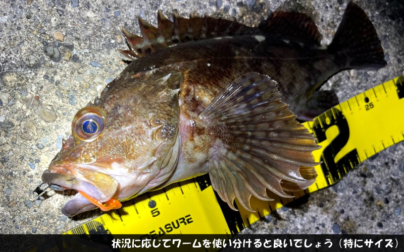 使えないことはないですが、根掛かりが付き物のロックフィッシュゲームです。とにかくボトム(海底)を狙う釣りなので、ワームが断然おすすめです。またミノーなどに比べて波動がナチュラルで、素材もソフトビニールやシリコンで作られており、甲殻類に模したモノから魚っぽいモノまで種類も豊富というのもワームを使う利点です。