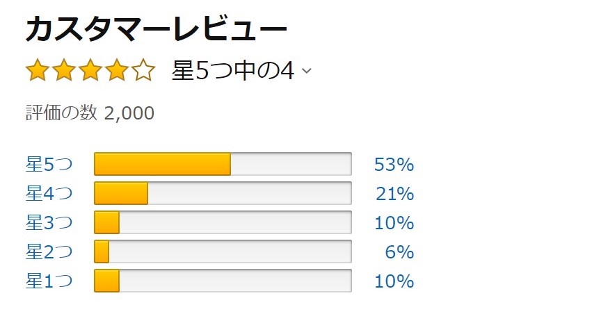 ってところだろうか。驚愕のカスタマーレビュー数2000越え。こんなに評価数の多い商品は初めて見た。