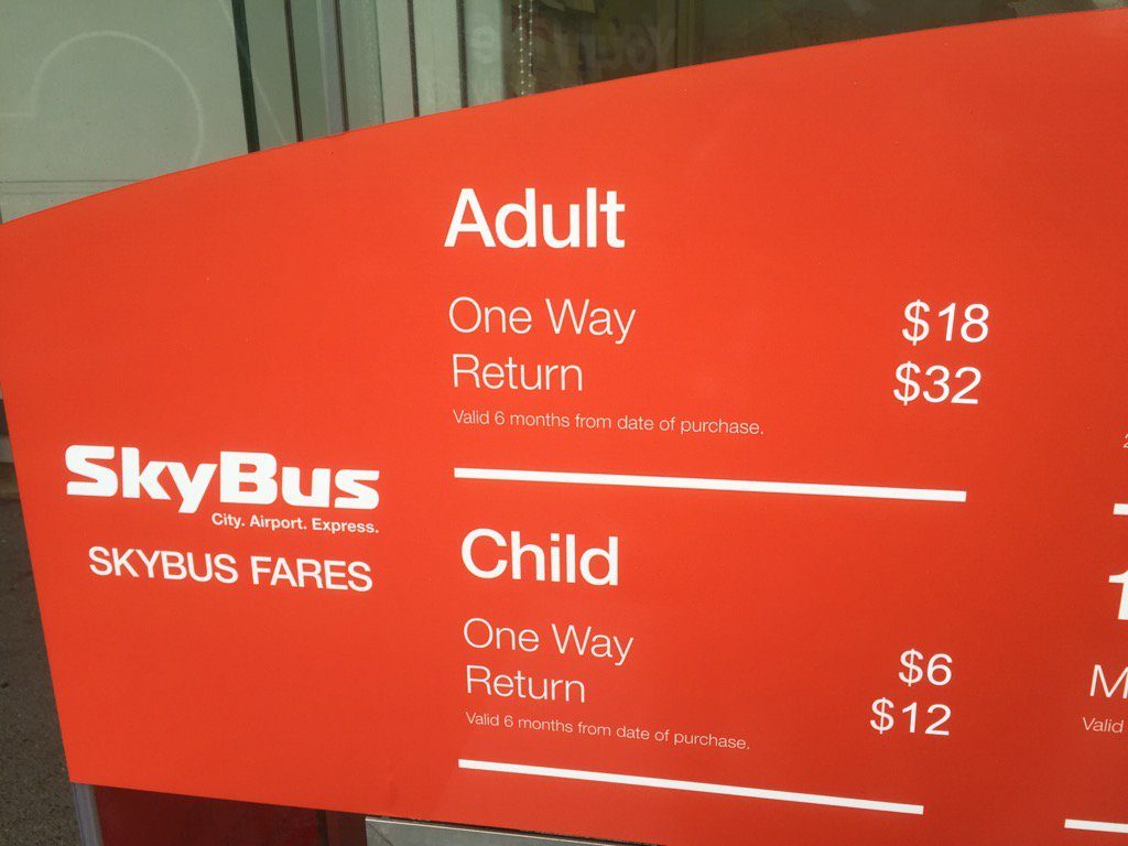 オークランド国際空港とオークランド市街地との間の料金は上の写真の通り