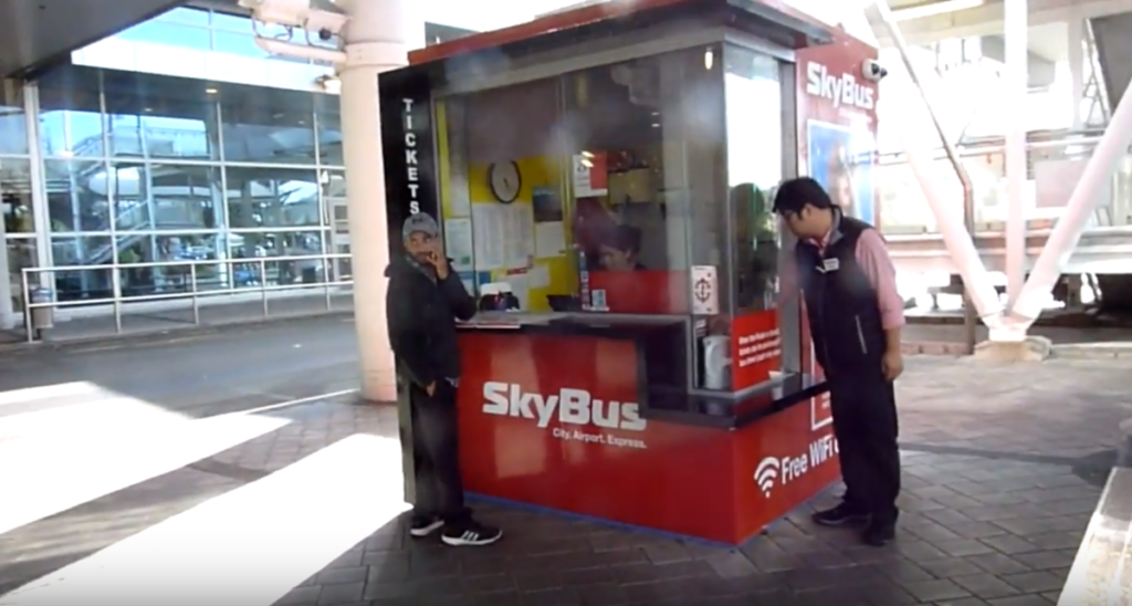 Civic付近にあるSkyBusのバス停の場合、すぐそばに窓口がありましたので、そちらで買い求めることができます。深夜の場合は窓口が開いていない場合はバスの運転手さんからも買い求めることができます。
