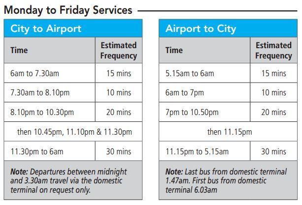 オークランド国際空港発のスカイバスは、概ね次の間隔で運行されています。