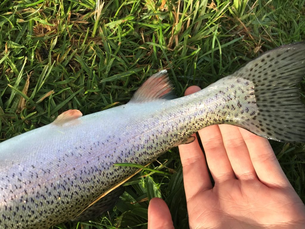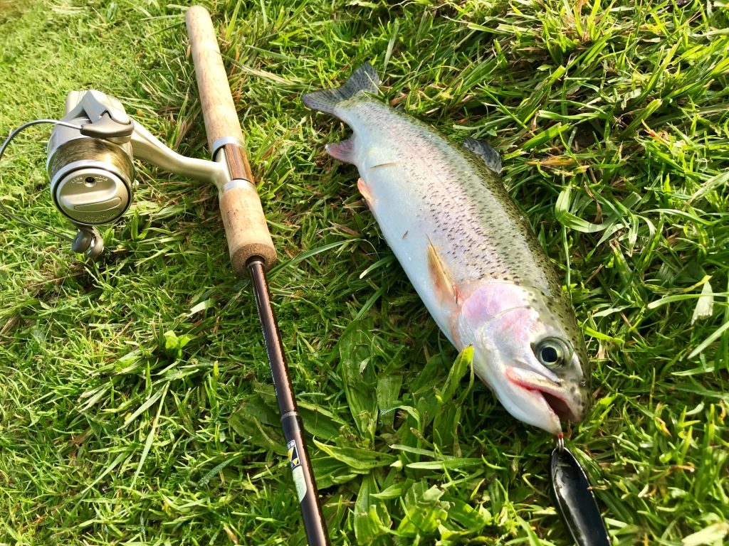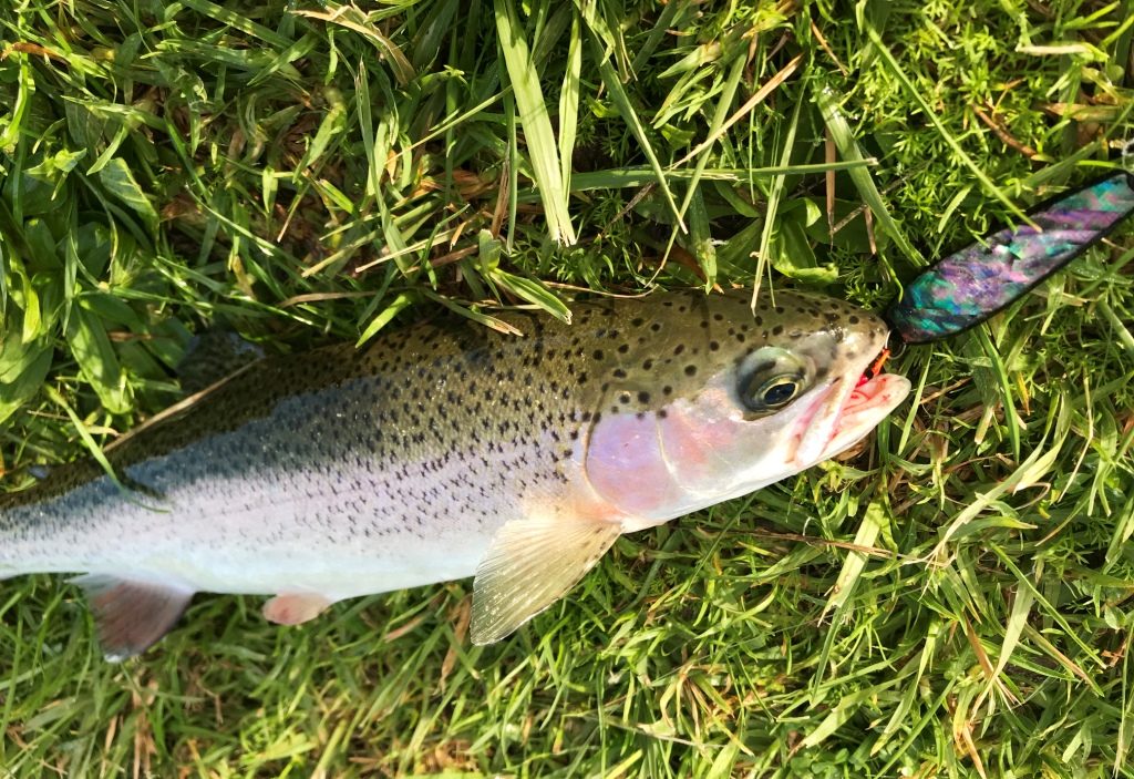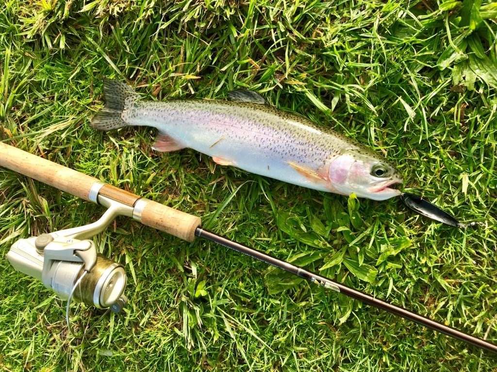 そんなにニジマスを釣ったことないから分からないけど、この日釣れたニジマスとしてはそこそこ大きかったです! というか、サイズとかはどうでもよく、スプーンという未体験のルアーで、ニジマスという それまで釣ったことのない魚を釣り上げたことが嬉しかったです!ありがとうニュージーランド!!