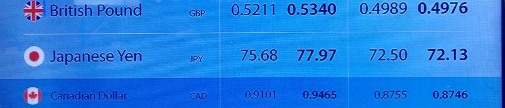 一応 日本円だけレートが悪いのかな?と思い、オーストラリアドルも一応 聞いてみると両手の人差し指を顔の横に並べ