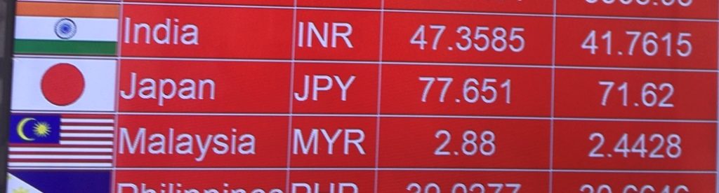 まず、上の写真のように、レートの電子掲示板のところには「We buy」と「We sell」の2項目があります。なお「Cheque」というのはオンライン上での取引のことです。現金を両替する際は「note」の欄を見ましょう。