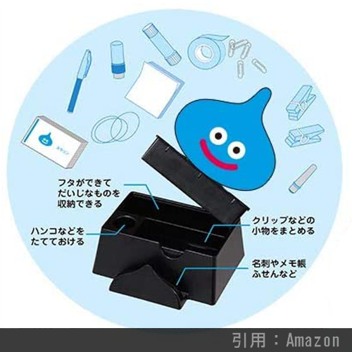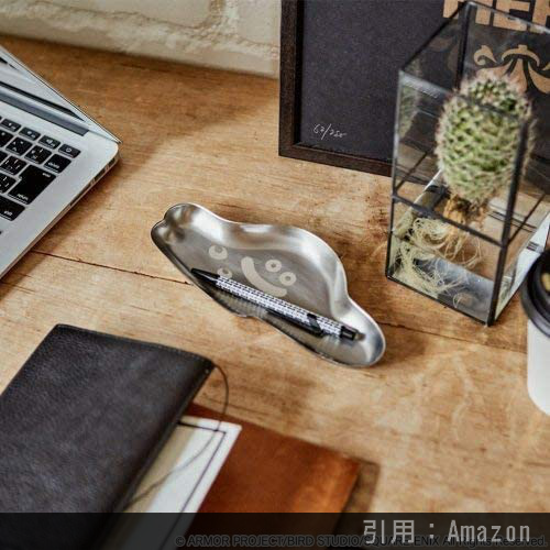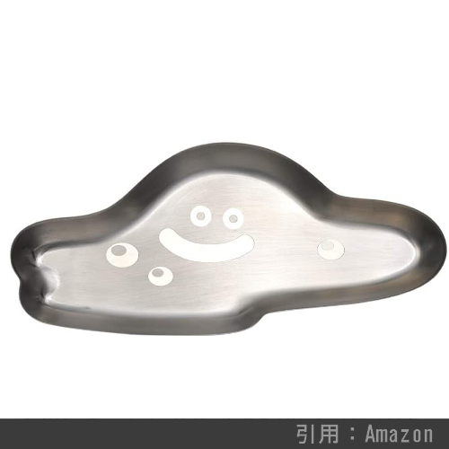 「はぐれメタル」のメタルな素材感を活かしたトレイです。形状もはぐれメタルの形に合わせており、ペンやメガネなどを置けるサイズになっているのでデスク周りをすっきりお片付け可能。モノを置くと顔が見えないのはご愛敬。