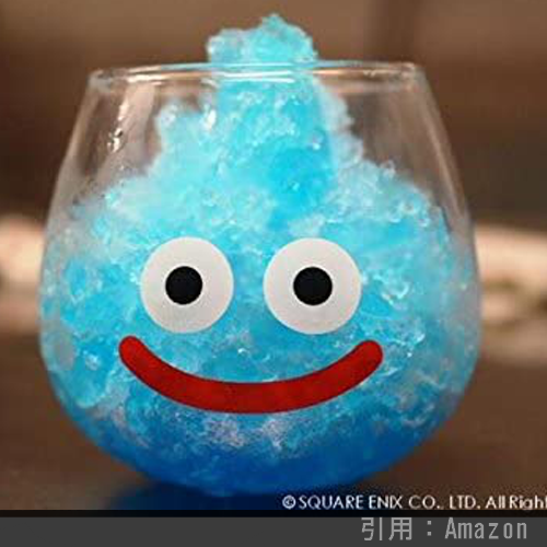 かき氷やジュースにピッタリ! な『ゆらゆらグラス』。ドラクエ関連のグッズでもトップクラスの売り上げ・評価を受けている人気グッズです。中身の色でいろんなスライムに変身させられるのも面白いですね。