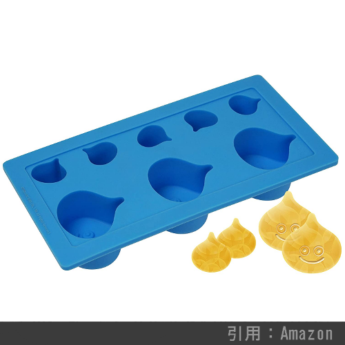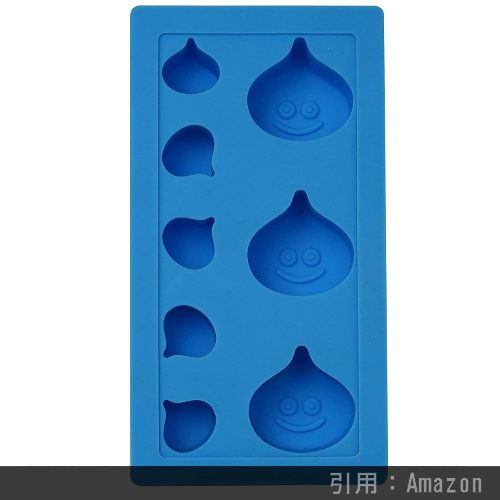 スライムのカタチをした氷を作れる製氷トレーです。容量は先述したシリコントレーに劣りますが、それでも目や口がハッキリと分かるスライムを作ることが出来ます。ひと昔前はプレミア価格がついていたりしたドラクエグッズです。