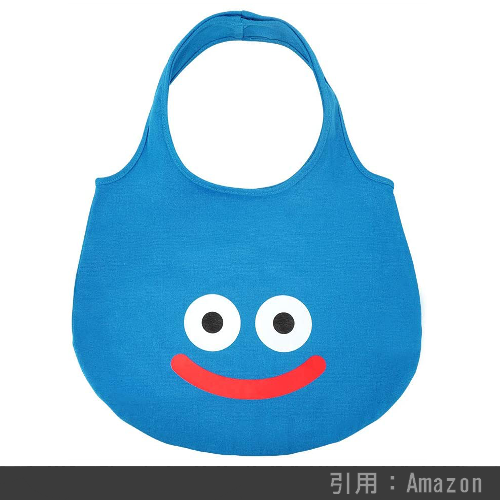 スライムデザインのエコバックです。ややサイズが小さいので、ちょっとした買い物には適しています。が、なかなかインパクトの強いアイテムなので、並みのドラクエ好きだと