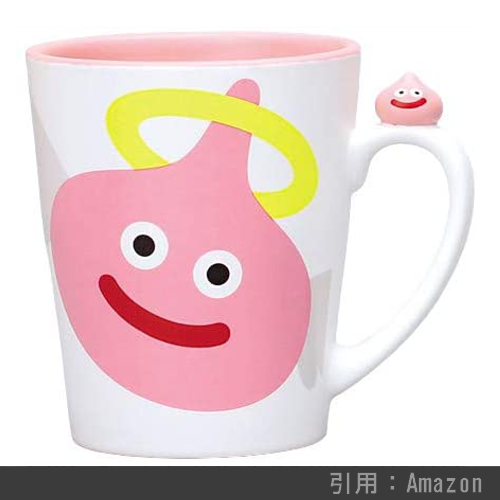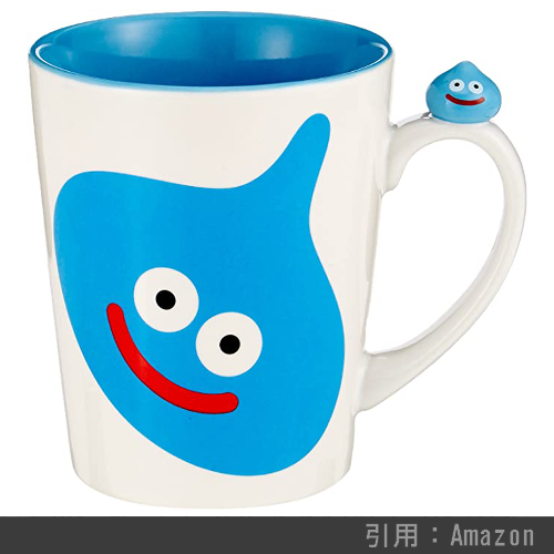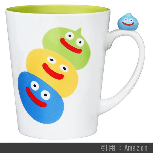 キャラクター色々、取っ手についた「スライム」のワンポイントがキュートなマグカップです。普段使いにも最適で、執筆時現在は売り切れ続出の大人気ドラクエグッズです。200ml入る容量も◎。