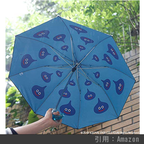 「スライム」柄の折りたたみ傘です。外側の、さりげないワンポイントデザインも良いですが、傘をひろげると内側には「スライム」がいっぱいでカワイイです。自分だけに見える幸せも◎。取手もスライムのように透け感のある水色で綺麗です。