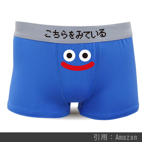 ドラクエの大本『スクエアエニックス』とは無関係ですが、笑顔になるプレゼントをコンセプトに、自由な発想で新製品を開発している株式会社洒落紋から出ているドラクエグッズも面白いです。ボクサーパンツを始め、Tシャルやタオルなど種類は多し。
