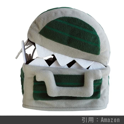 スライムのカタチを模したディッシュカバーです。やや実用性に劣りますが(ティッシュ取口が斜めなため、出しずらい)、カワイイは正義。個人的にはミミックのティッシュカバーの方がプレゼントされたら『はぁ?w』とたまらなく嬉しくなりますが、一般的には多分 スライムのティッシュカバーの方がウケは良いでしょう。