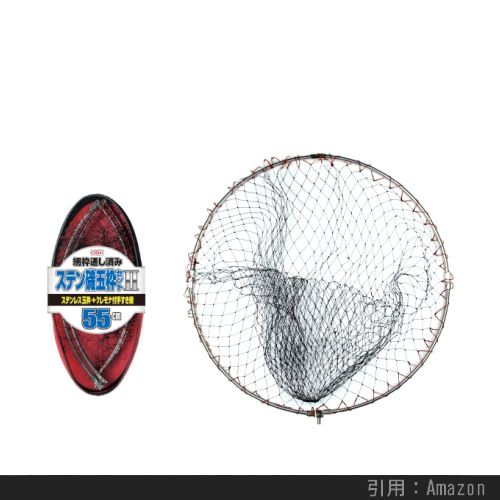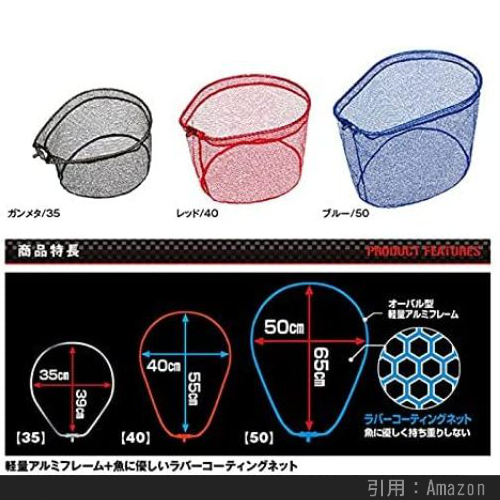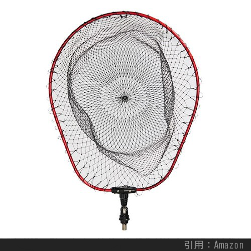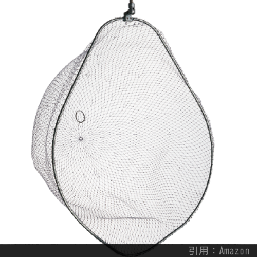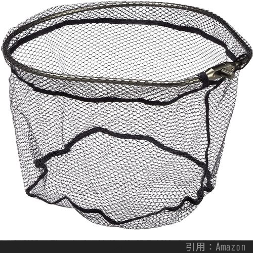 やや自重がありますが、価格が安く使い勝手の良いオーバル型のタモ枠&網セットです。網はポリエステルの網にラバーをコーティングした軽量で魚に優しい仕様となっていますが、その分 水の抵抗を強く受けます。水中でふり回すとタモの柄への負担がかかりますので注意しましょう。そのほかは良好。Amazonでも高評価が多いです。
