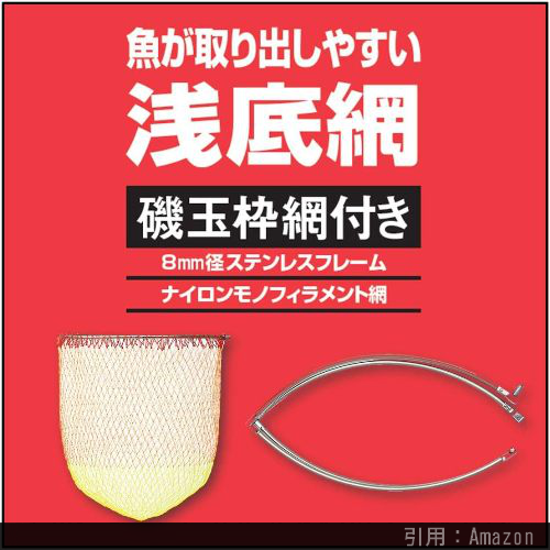 - 取り込んだ魚が網に絡まりにくく、取り出しやすい浅底網で手返しスピードがアップ