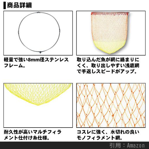 どれも人気で信頼度の高いタモ枠です。公式サイトのアイテムページリンクや、各アイテムリンクから実際に使用している方のレビューも確認できたりします。そちらも是非 ご参考ください。