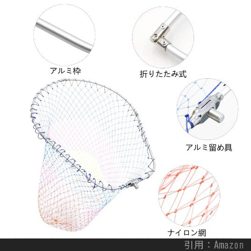 とにかく価格が安いSANLIKEのタモ枠セットです。4つ折り(40㎝枠は3つ折り)になるため携行性が良く、自転車釣行や電車釣行の方におすすめです。付属するネットはラバー製に変えることも可能。