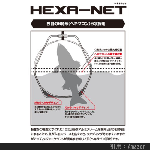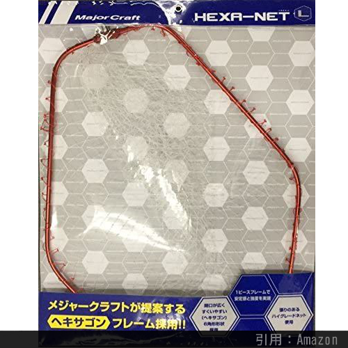 取り込み時の間口が広いヘキサゴン(6角)形状を採用したメジャークラフトのタモ枠セットです。カーブを最小限に抑えたストレート部重視の形状は、防波堤の壁にぴったりと付くので安定性とランディングの逃げ場も減少。張りのあるハイグレードネットを標準装備しています。
