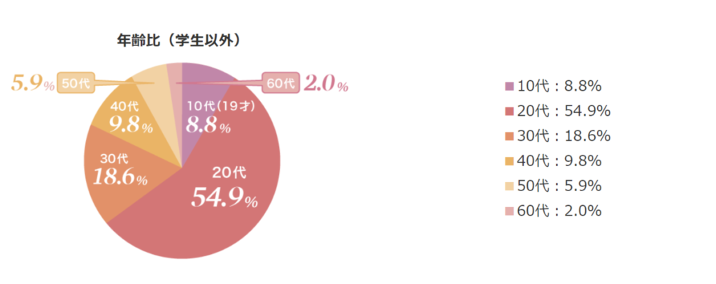 引用:『リゾートバイト応募者の年齢層を完全公開!実際に何歳くらいの人が多い?』 リゾバ.com
