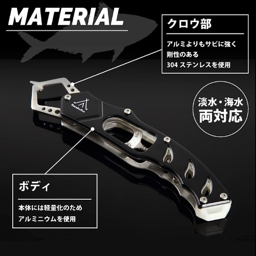 釣具メーカーの超大手、DAIWAが発売しているフィッシュグリップです。見た目はDAIWAオリジナルの堅牢なデザインにアルマイトヘアライン加工が施されており、高級感があります。厳寒期に指一本で操作できるスライドトリガーによるホールド力にも定評があり、尺メバルでも外れません。グリップ部にはすべり止めが施されており滑りにくい他、自重も軽かったりと文句ナシの実釣性能です。流石はダイワ。